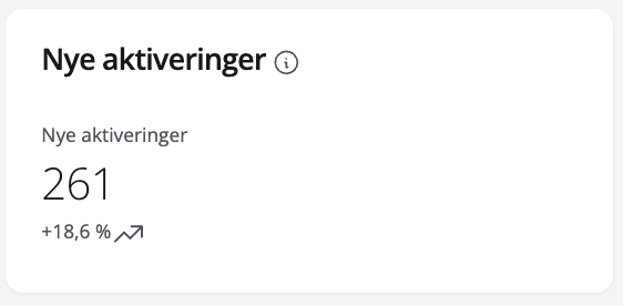 Under mange af metrikkerne vil du se dets trend. En trend viser udviklingen fra den forrige periode fra det, som du har valgt i øjeblikket. Dette betyder, at hvis du f.x. har valgt at vise nye aktiveringer fra de seneste 7 dage, så vil trenden vise en sammenligning fra de 7 dage lige før. Dermed kan du øjeblikkeligt se, om der er sket en forbedring efter din indsats.