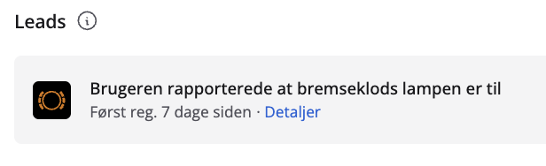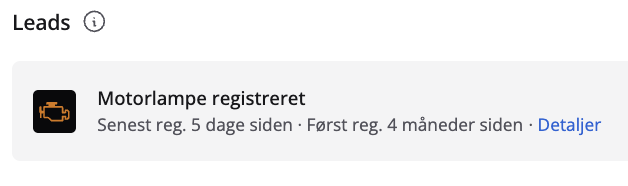 ConnectedWorkshop indsamler data via bilens CC-link, der bliver til en række akutte leads - i denne artikel kan du læse nærmere om de forskellige leadtyper du kan finde i portalen: