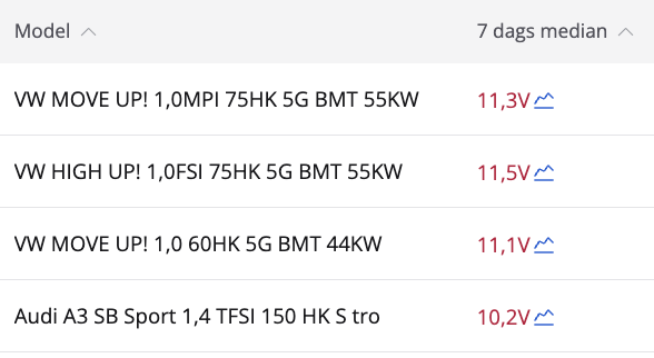 Et lavt batterispændingslead genereres, hvis bilen har været ude og køre inden for de seneste 7 dage, og den gennemsnitlige batterispænding, når bilen står stille, er under 11.7 V.