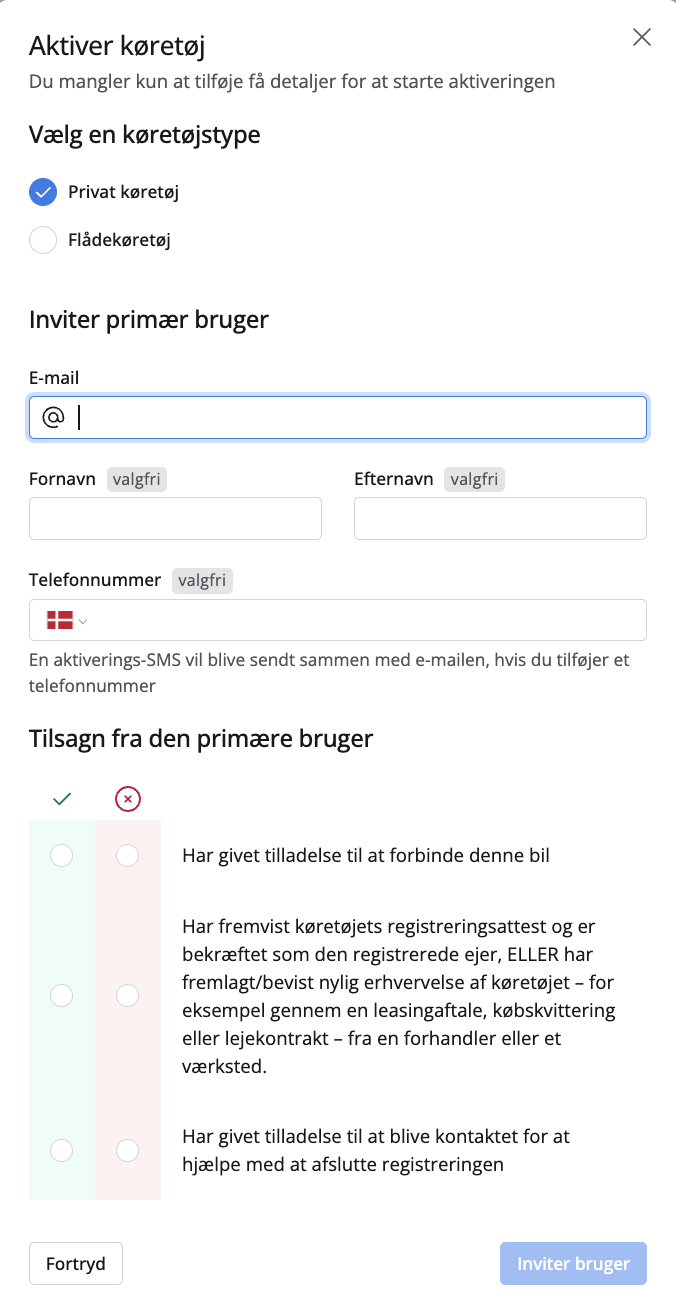 Hvis der ikke er nogen bruger forbundet til bilen, skal du tilføje brugeren til bilen.