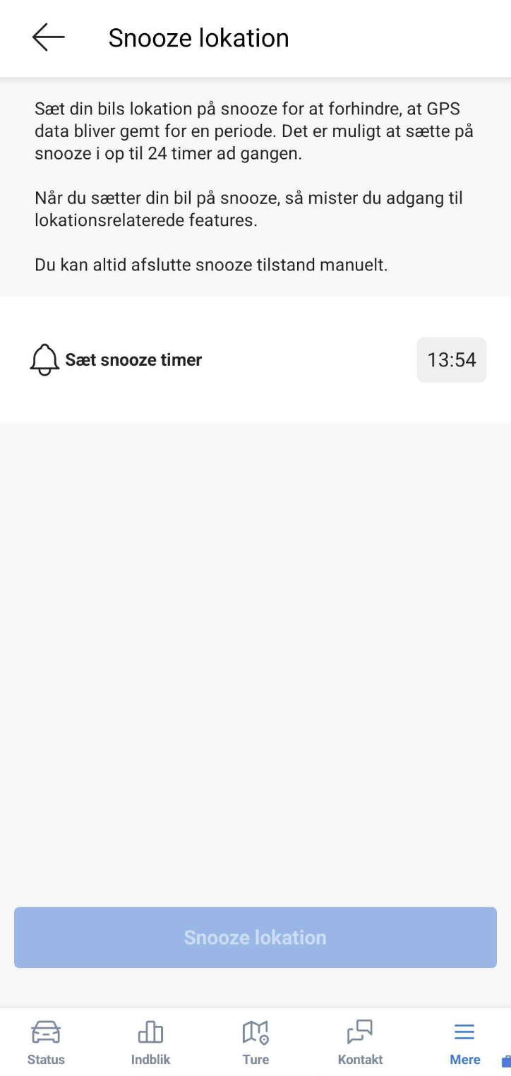 Her kan du læse og se, hvordan kunden kan snooze lokationen i MinSEAT, MinVolkswagen, MinSEAT og mitAudi i det antal timer, som de ønsker (max 24 timer af gangen).