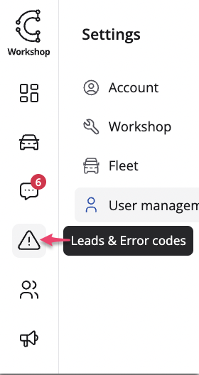 You are able to view a vehicle's leads and error codes by clicking on the 'Leads and Errors' tab on the vehicle page.