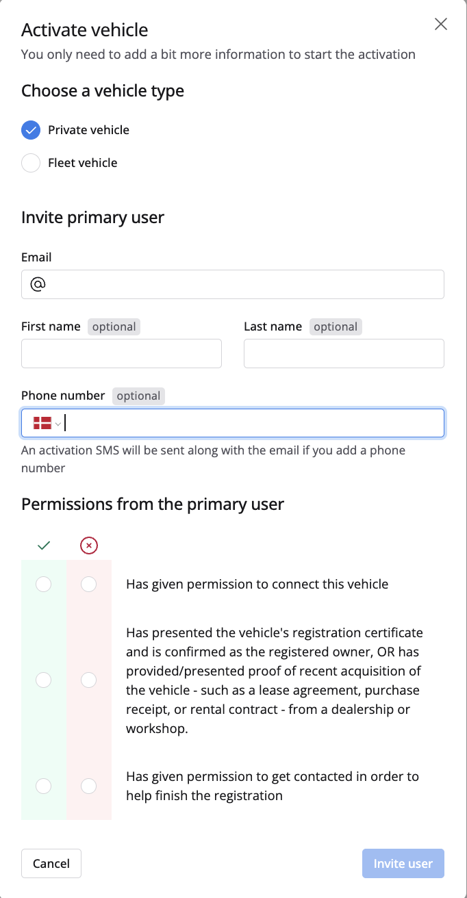 It's very important that the user does not use Facebook or Apple ID to log in with, as these will be added as a new account and therefore will not be the same user as the one that is connected to the car.